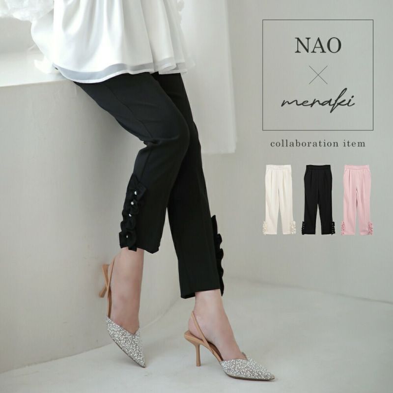 サイドフリルパールパンツ サイドフリル パール パンツ NAOさんコラボ!■ サイドフリルパールパンツ サイドフリル パール パンツ ボトムス レディース 春 夏【m759】【即納】【送料無料】メ込