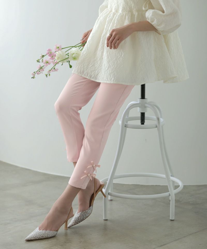 サイドリボンパンツ リボン テーパードパンツ アンクルパンツ パンツ ボトムス サイドリボンパンツ リボン テーパードパンツ アンクルパンツ パンツ ボトムス レディース 春 夏【m766】【即納:1〜2日以内に発送予定(店舗休業日を除く)】メ込