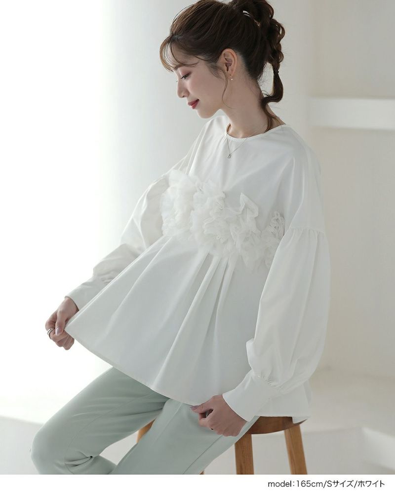 胸フリル長袖ブラウス 長袖 ボリューム袖 裾フレア ペプラム ブラウス トップス 胸フリル長袖ブラウス 長袖 ボリューム袖 裾フレア ペプラム ブラウス トップス レディース 春 夏【m774】【即納:1~2日以内に発送予定(店舗休業日を除く)】【送料無料】メ込