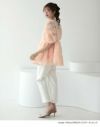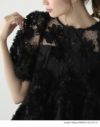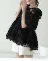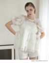 商品コメント 繊細なドットチュールに、ふんわり立体感のあるフラワーモチーフを贅沢に重ねた、華やかで印象的なシアーブラウス。