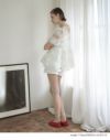 透け感のあるネック&デコルテ部分は、ドット柄の軽やかさと甘さが絶妙なバランスで、顔まわりをふんわり優しく演出。