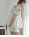 立体フラワー×シアー素材の軽やかさが魅力。肌見せも上品に。