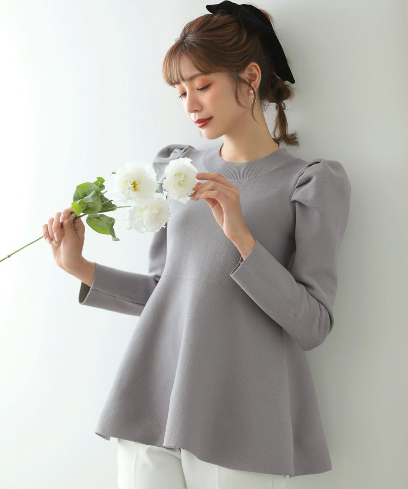パフスリーブペプラムニットトップス ニット フレア ペプラム パワーショルダー 長袖 トップス パフスリーブペプラムニットトップス ニット フレア ペプラム パワーショルダー 長袖 トップス レディース 春 夏【m805】【即納:1〜2日以内に発送予定(店舗休業日を除く)】【送料無料】メ込