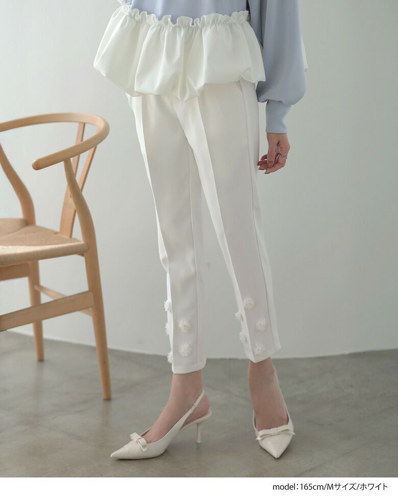 裾フラワーパンツ テーパードパンツ フラワー パンツ ボトムス レディース 裾フラワーパンツ テーパードパンツ フラワー パンツ ボトムス レディース 春 夏【m830】【1~2日以内に発送予定(店舗休業日を除く)】【送料無料】メ込