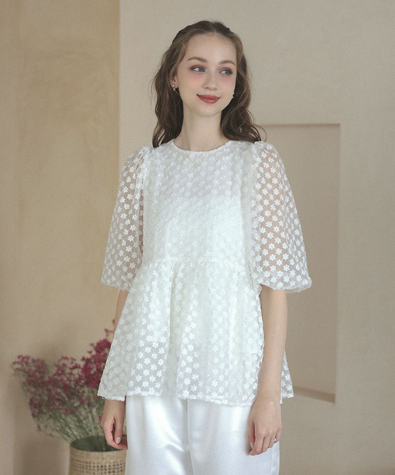 フラワーシアートップス シアー メッシュ 裾フレア ペプラム トップス レディース フラワーシアートップス シアー メッシュ 裾フレア ペプラム トップス レディース 春 夏【m837】【即納:1~2日以内に発送予定(店舗休業日を除く)】【送料無料】メ込
