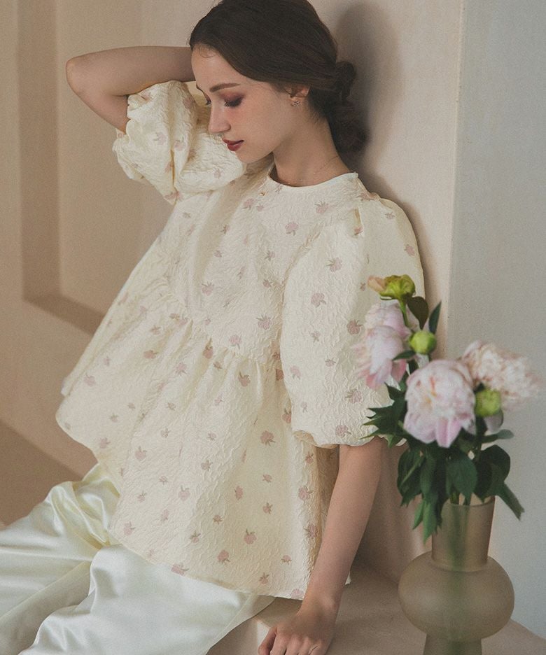 商品名 ペプラムフラワーパフスリーブブラウス