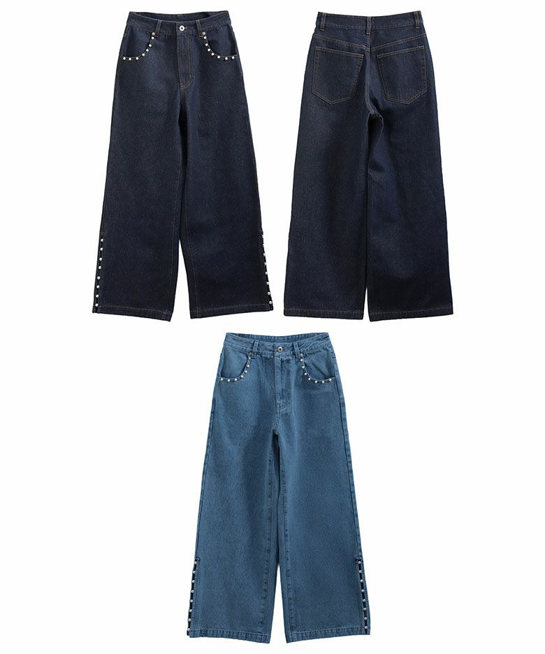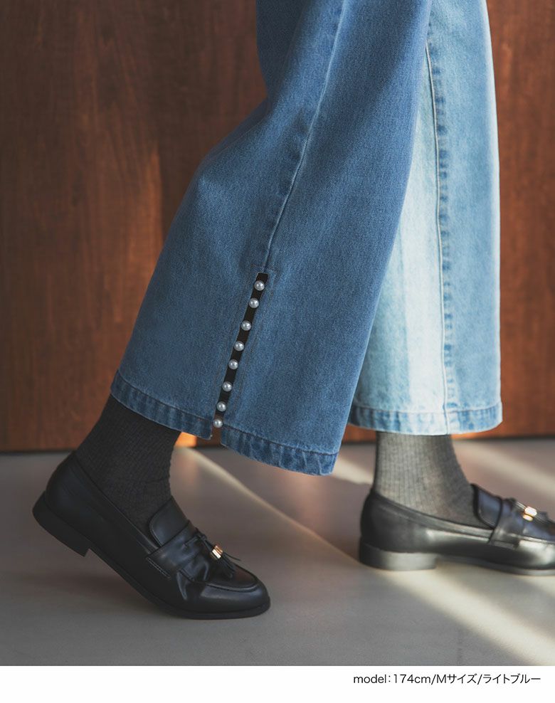 パールスリットデニムパンツ パンツ ボトムス レディース 秋【m861】【即納販売】【送料無料】メ込