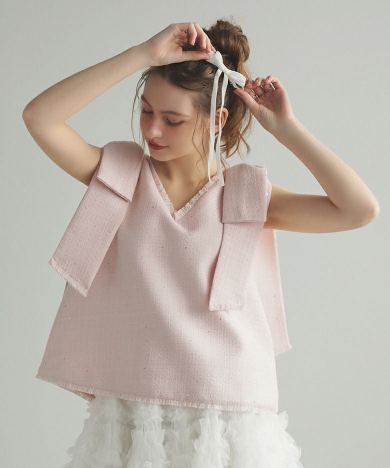 ツイードリボンジレ ノースリーブ トップス レディース 3/10 13:00~販売■ツイードリボンジレ ノースリーブ トップス レディース 春【m884】【予約販売:4/6~4/15までに順次発送】【送料無料】メ込