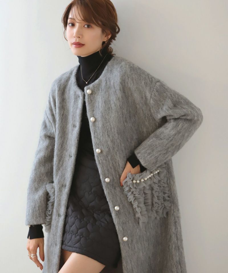 チュールポケットロングコート ファーコート ロング丈 コート アウター レディース チュールポケットロングコート ファーコート ロング丈 コート アウター レディース 秋 冬【m817】【即納:1~2日以内に発送予定(店舗休業日を除く)】【送料無料】宅込