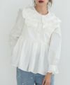 スカラップレース襟ブラウス スカラップ襟 ビッグカラー 裾フレア ペプラム ブラウス トップス 長袖 レディース スカラップレース襟ブラウス スカラップ襟 ビッグカラー 裾フレア ペプラム ブラウス トップス 長袖 レディース 秋 【m715b】【即納:1~2日以内に発送予定(店舗休業日を除く)】【送料無料】メ込