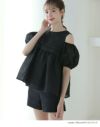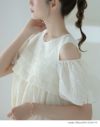 オープンショルダージャガードトップス 肩出し 裾フレア ペプラム ジャガード トップス オープンショルダージャガードトップス 肩出し 裾フレア ペプラム ジャガード トップス レディース 春 夏【m763】【即納:1~2日以内に発送予定(店舗休業日を除く)】【送料無料】メ込