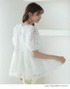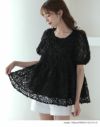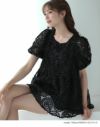 フラワーモチーフチュールトップス チュール 半袖 パフ袖 裾フレア ペプラム ブラウス トップス レディース フラワーモチーフチュールトップス チュール 半袖 パフ袖 裾フレア ペプラム ブラウス トップス レディース 春 夏【m783】【即納:1~2日以内に発送予定(店舗休業日を除く)】【送料無料】メ込