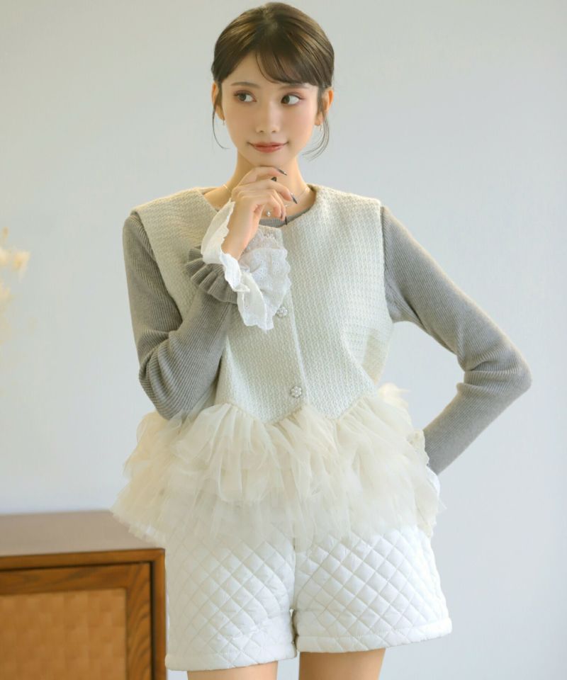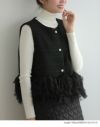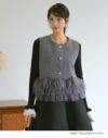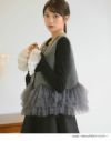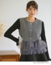 チュールフリルツイードジレ 裾チュール ジレ ツイード ベスト トップス チュールフリルツイードジレ 裾チュール ジレ ツイード ベスト トップス レディース 秋【m811】【即納】【送料無料】メ込