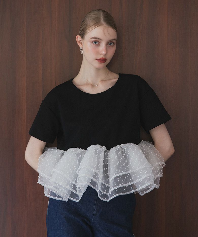 ドットフリルヘムライントップス ドット柄 ヘムライン 裾フリル トップス レディース ドットフリルヘムライントップス ドット柄 ヘムライン 裾フリル トップス レディース 春 夏【m847】【即納:1~2日以内に発送予定(店舗休業日を除く)】【送料無料】メ込