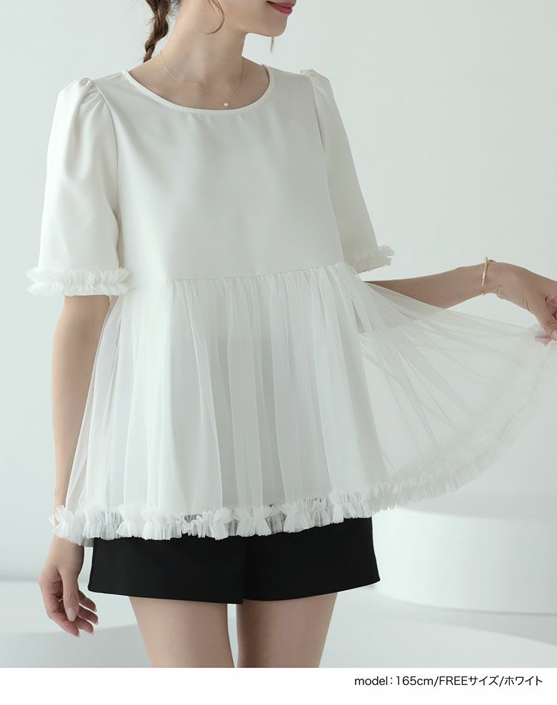 他の画像を見る チュールドッキングペプラムトップス 裾フリル ペプラム チュール ブラウス 半袖 トップス チュールドッキングペプラムトップス 裾フリル ペプラム チュール ブラウス 半袖 トップス レディース 春 夏【m777】【即納:1~2日以内に発送予定(店舗休業日を除く)】【送料無料】メ込 販売価格 ¥ 5,180 税込 カートに入れる お気に入りに登録する
