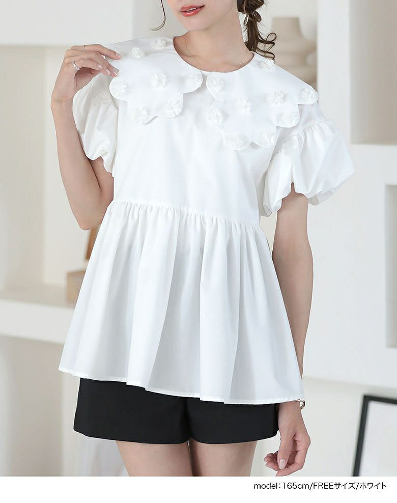 他の画像を見る フラワー襟パフスリーブペプラムブラウス 裾フレア ペプラム ブラウス スカラップカラー パフ袖 半袖 トップス フラワー襟パフスリーブペプラムブラウス 裾フレア ペプラム ブラウス スカラップカラー パフ袖 半袖 トップス レディース 春 夏【m768】【即納:1~2日以内に発送予定(店舗休業日を除く)】【送料無料】メ込 販売価格 ¥ 6,290 税込 カートに入れる お気に入りに登録する