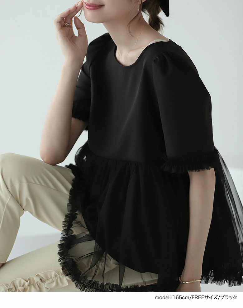 他の画像を見る チュールドッキングペプラムトップス 裾フリル ペプラム チュール ブラウス 半袖 トップス チュールドッキングペプラムトップス 裾フリル ペプラム チュール ブラウス 半袖 トップス レディース 春 夏【m777】【即納:1~2日以内に発送予定(店舗休業日を除く)】【送料無料】メ込 販売価格 ¥ 5,180 税込 カートに入れる お気に入りに登録する