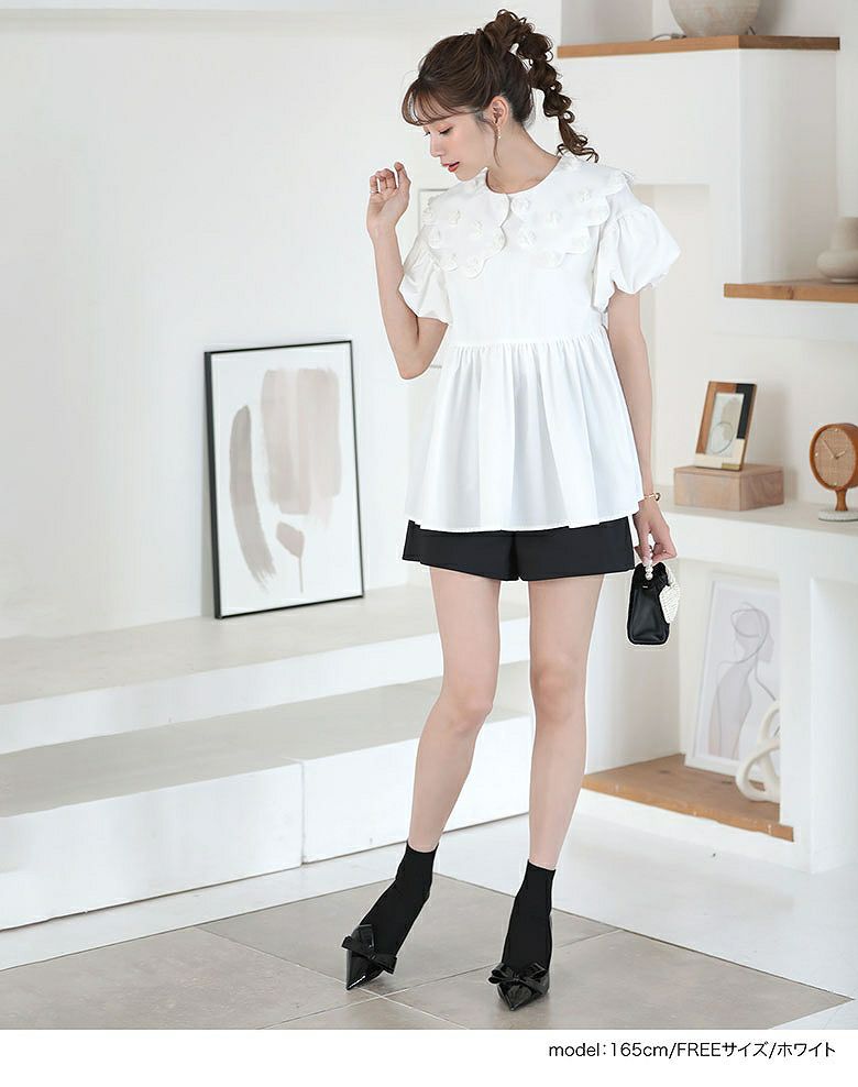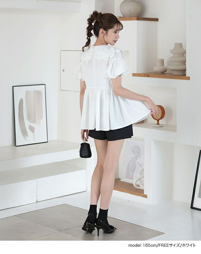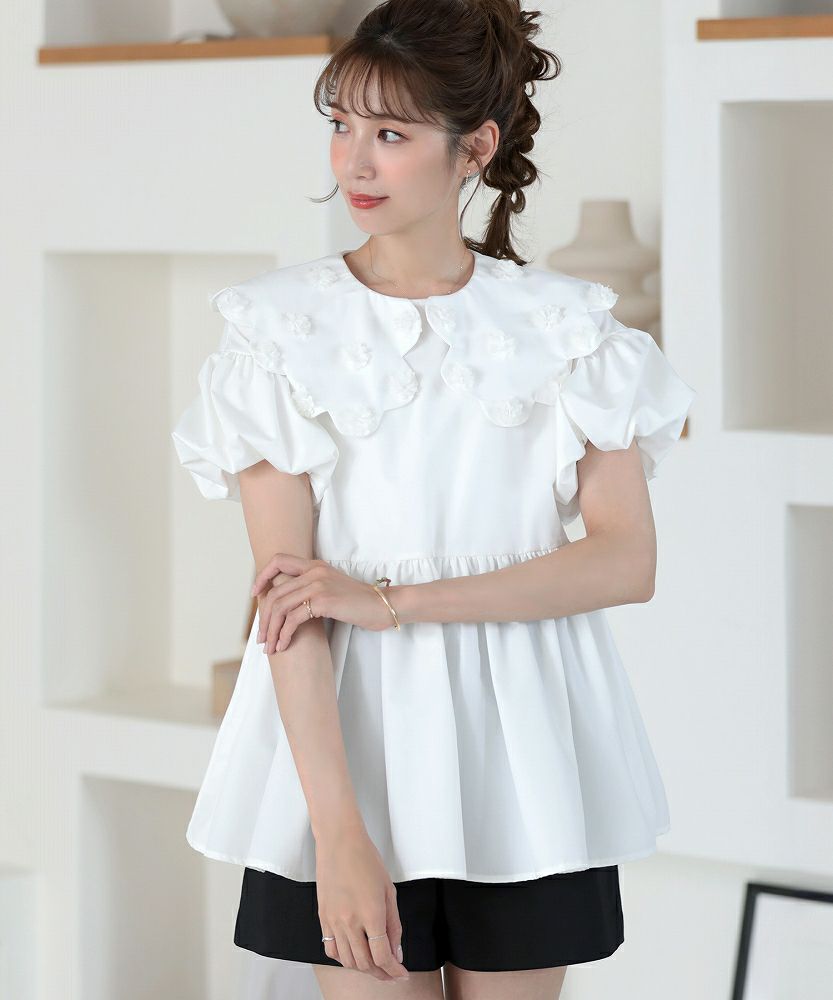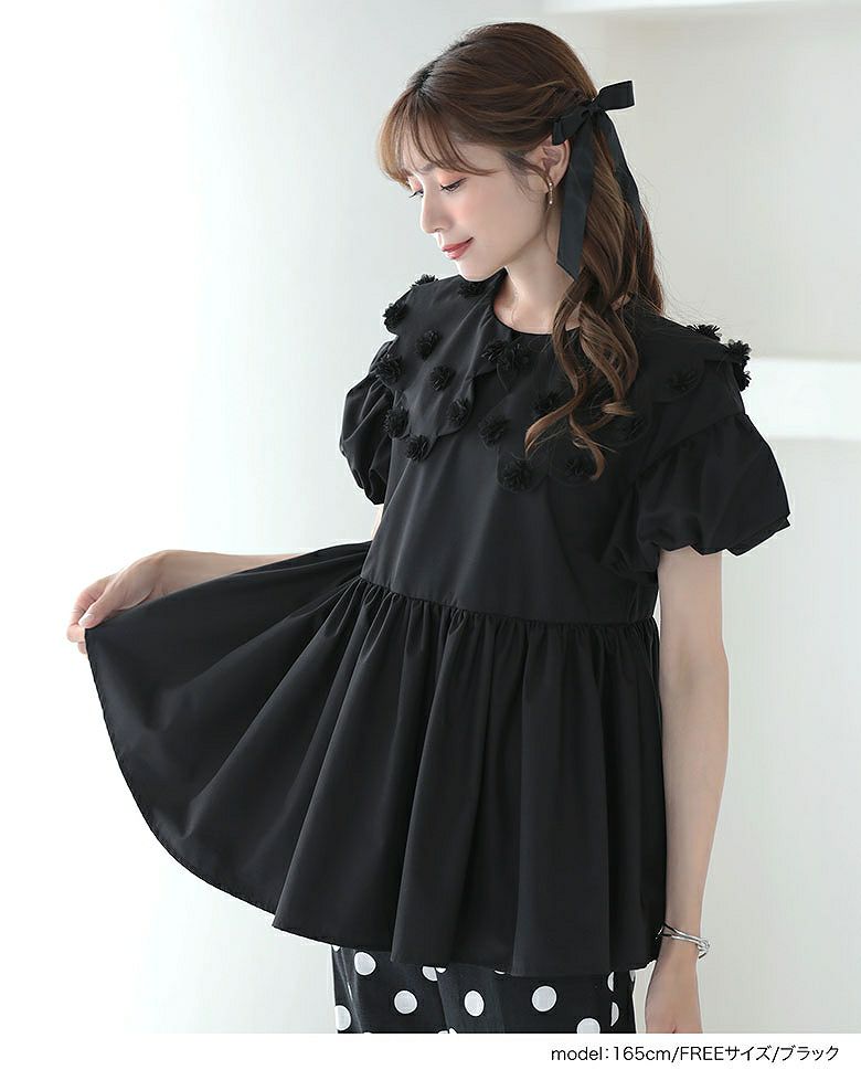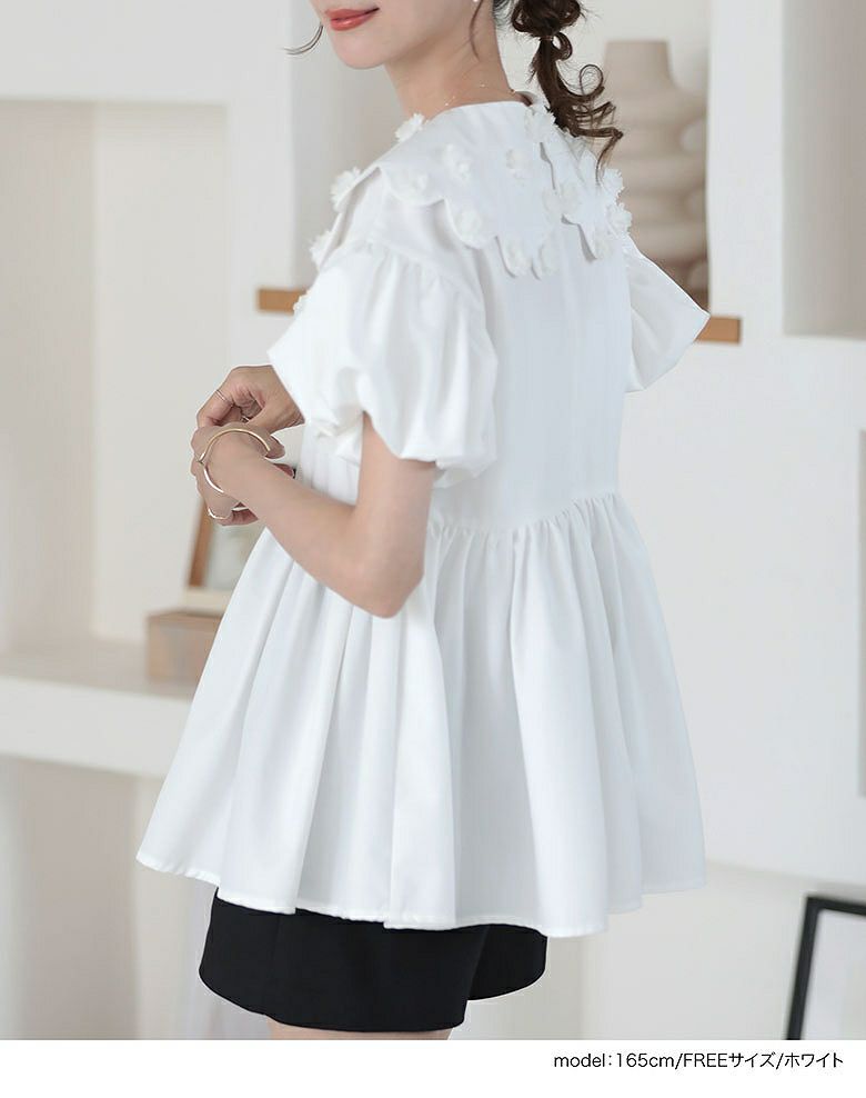 他の画像を見る フラワー襟パフスリーブペプラムブラウス 裾フレア ペプラム ブラウス スカラップカラー パフ袖 半袖 トップス フラワー襟パフスリーブペプラムブラウス 裾フレア ペプラム ブラウス スカラップカラー パフ袖 半袖 トップス レディース 春 夏【m768】【即納:1~2日以内に発送予定(店舗休業日を除く)】【送料無料】メ込 販売価格 ¥ 6,290 税込 カートに入れる お気に入りに登録する
