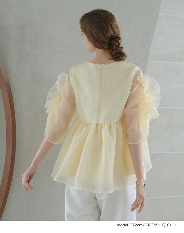 他の画像を見る ペプラムシアーブラウス 裾フレア シアー袖 バックファスナー 五分袖 ブラウス トップス レディース 新色追加■ペプラムシアーブラウス 裾フレア シアー袖 バックファスナー 五分袖 ブラウス トップス レディース 春 夏【m835】【即納:1~2日以内に発送予定(店舗休業日を除く)】【送料無料】メ込 販売価格 ¥ 6,790 税込 カートに入れる お気に入りに登録する